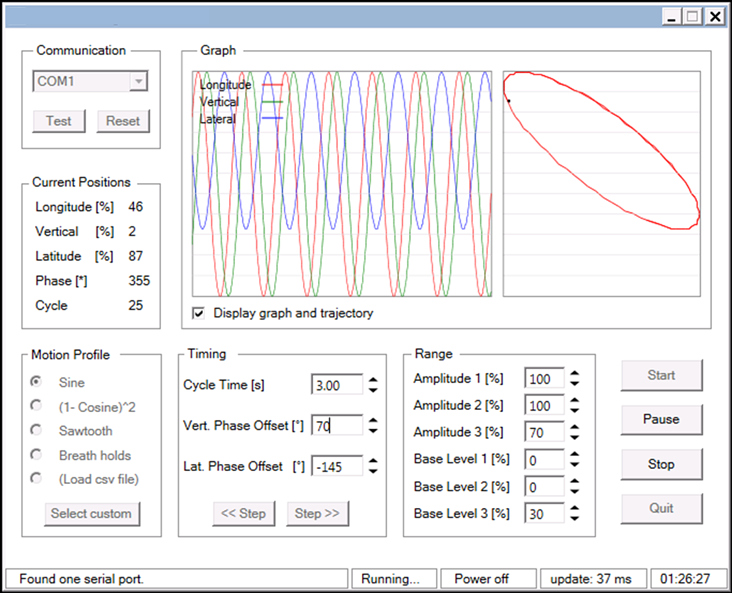 Project’s goal: the movement patterns of patients needed to be simulated using a robot which imitates the lungs of a human being. Therefore a C++ application was needed to control such robot and to serve as the interface with the computer.