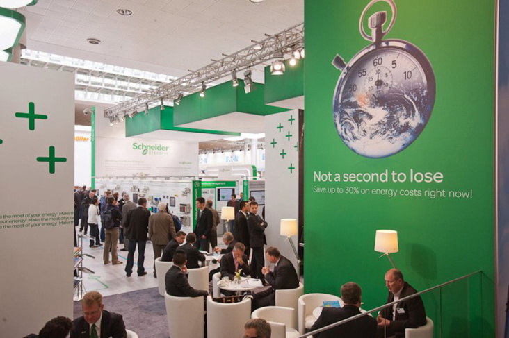 Umsetzung der Grafiken für den gesamten Stand von Schneider Electric auf der Hannover Messe 2012