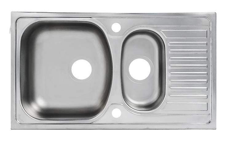 Funktionale Edelstahl Küchenspüle 78 × 48 cm als praktische 1,5 Becken Einbauspüle mit integrierter Abtropffläche. Die Kombination aus Hauptbecken und zusätzlichem Restebecken ermöglicht paralleles Arbeiten – ideal zum Spülen, Abgießen, Vorsortieren oder Reinigen von Lebensmitteln.